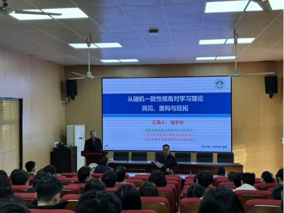 报告会上,钱宇华教授以机器学习的“可信性”为切入点,指出传统学习理论在应对数据噪音、标注偏差等“随机一致性”问题时存在局限。他系统阐释了随机一致性的定义、数学表征及在样本收敛性、算法稳定性中的作用,提出通过优化样本抽样策略、升级模型误差分析范式、设计鲁棒性算法,为机器学习的可解释性与可靠性提供理论支撑。